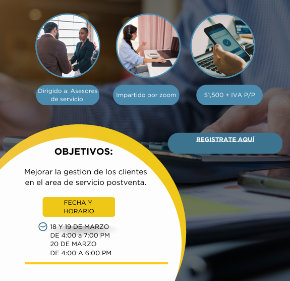 CURSO: PROFESIONALIZACION DEL ASESOR DE SERVICIO CURSO: PROFESIONALIZACION DEL ASESOR DE SERVICIORegístrate aquí•Noticias | AMDA Jalisco | 10 Marzo 2026• Rdealba12026-03-10T22:02:15+00:00 Related Posts Taller Gerencial de Administración al Departamento de REFACCIONES Reporte Mercado Interno Automotor Ligeros Reporte de venta de vehículos ligeros nuevos por marca en febrero de 2026 Evolución de comercialización de vehículos pesados Enero 2026